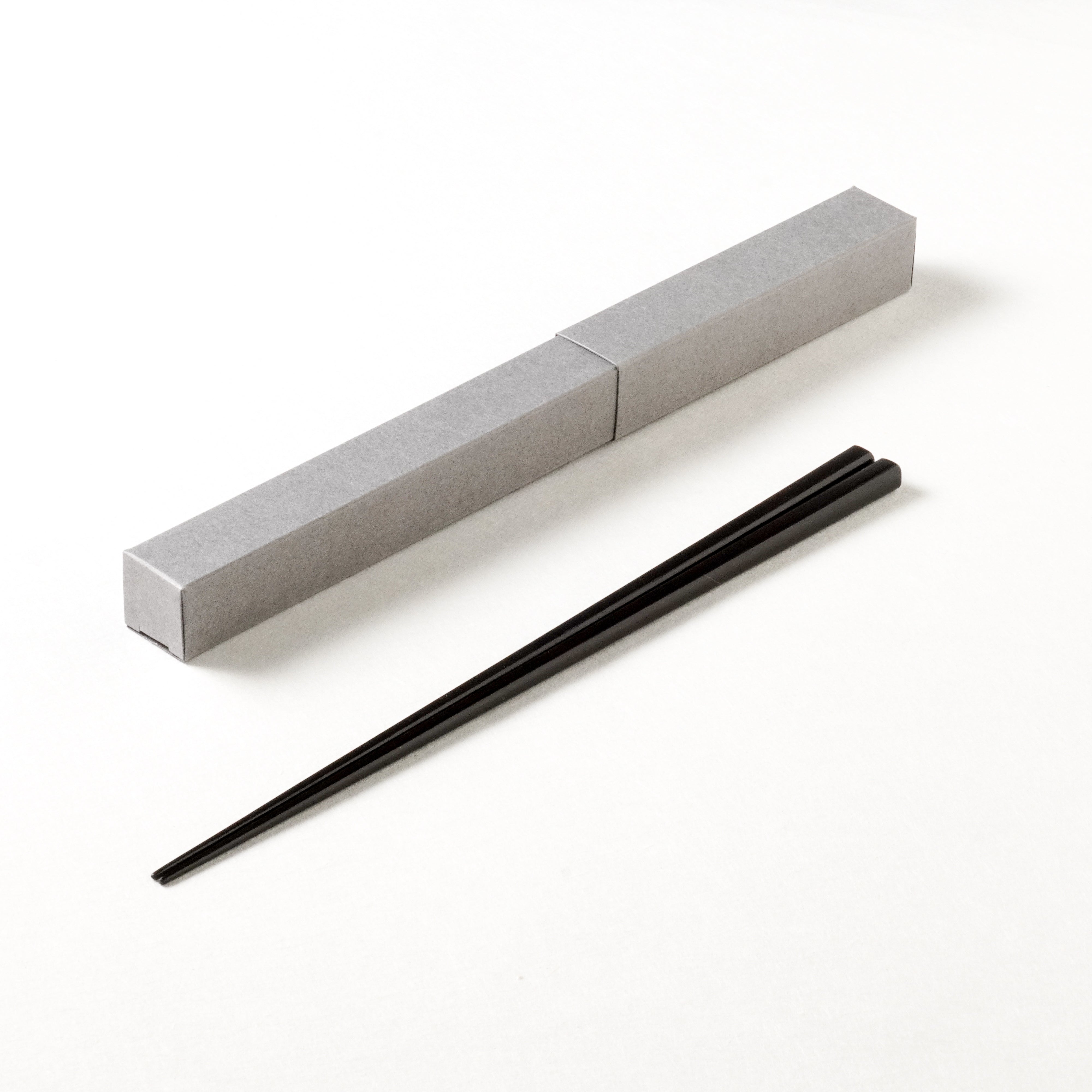 漆で仕上げた細身の木製箸。箸先まで四角が続く「先角」は繊細な箸使いができます。