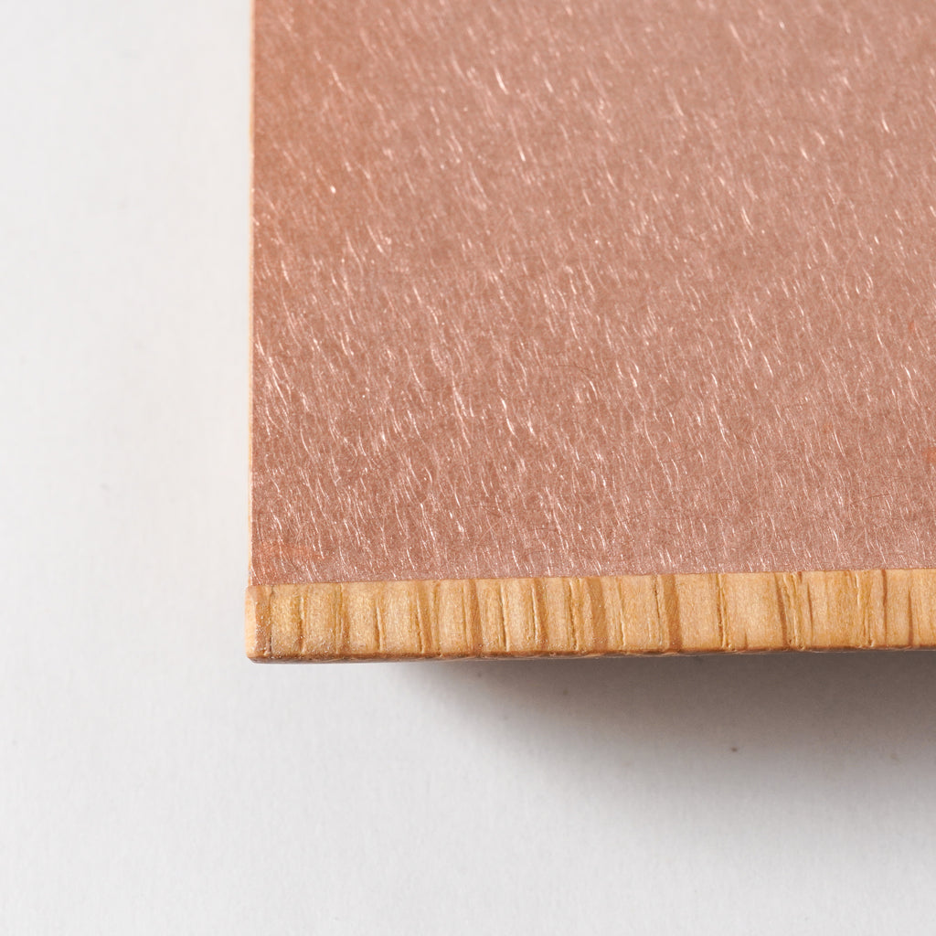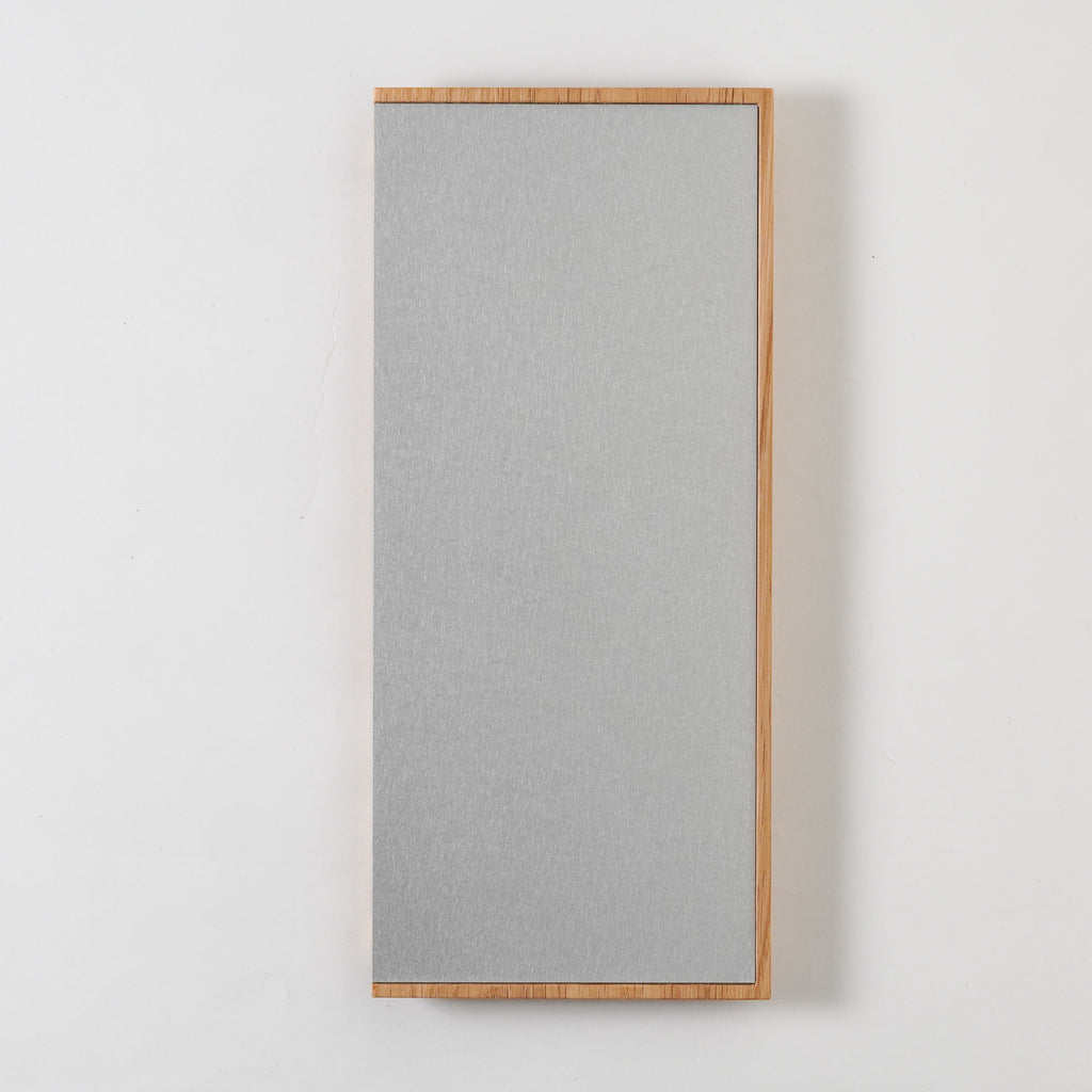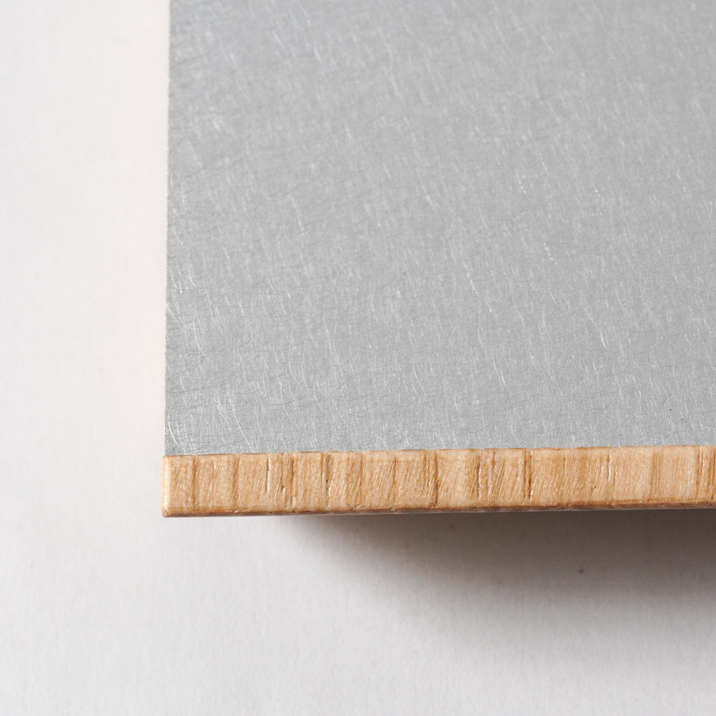 まるで家具から切り出したような断面が目を惹く木製の敷板。片面に金属板(銅 又は アルミニウム)を大胆に張り合わせ、両面どちらもトレーとしてお使いいただけます。