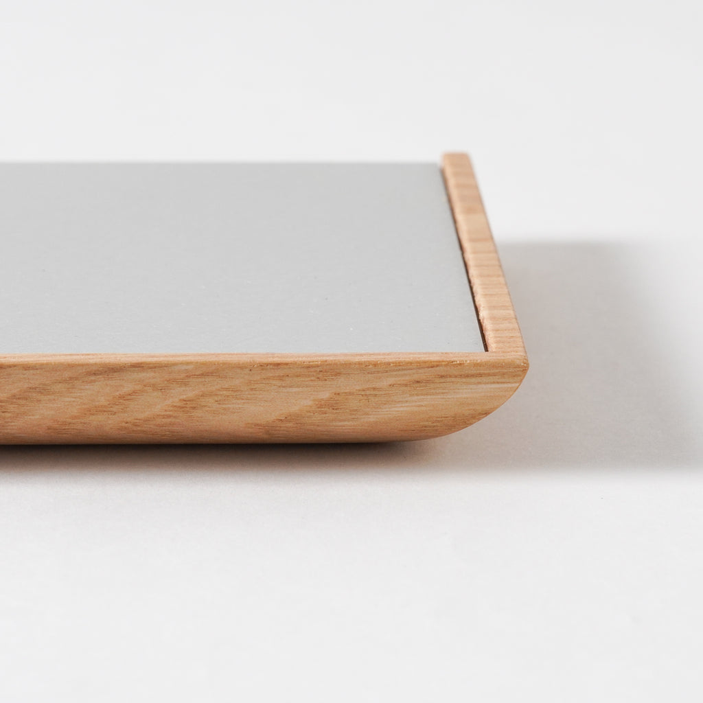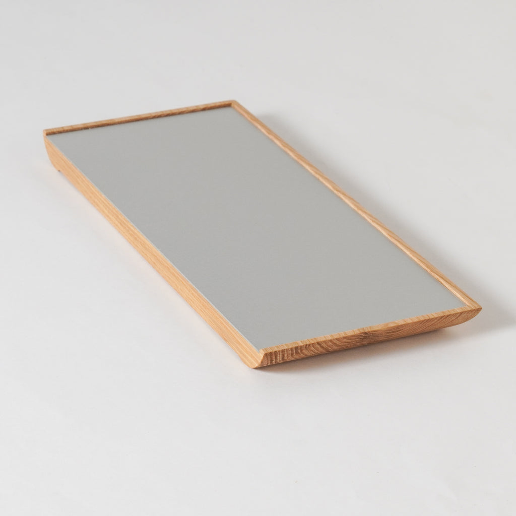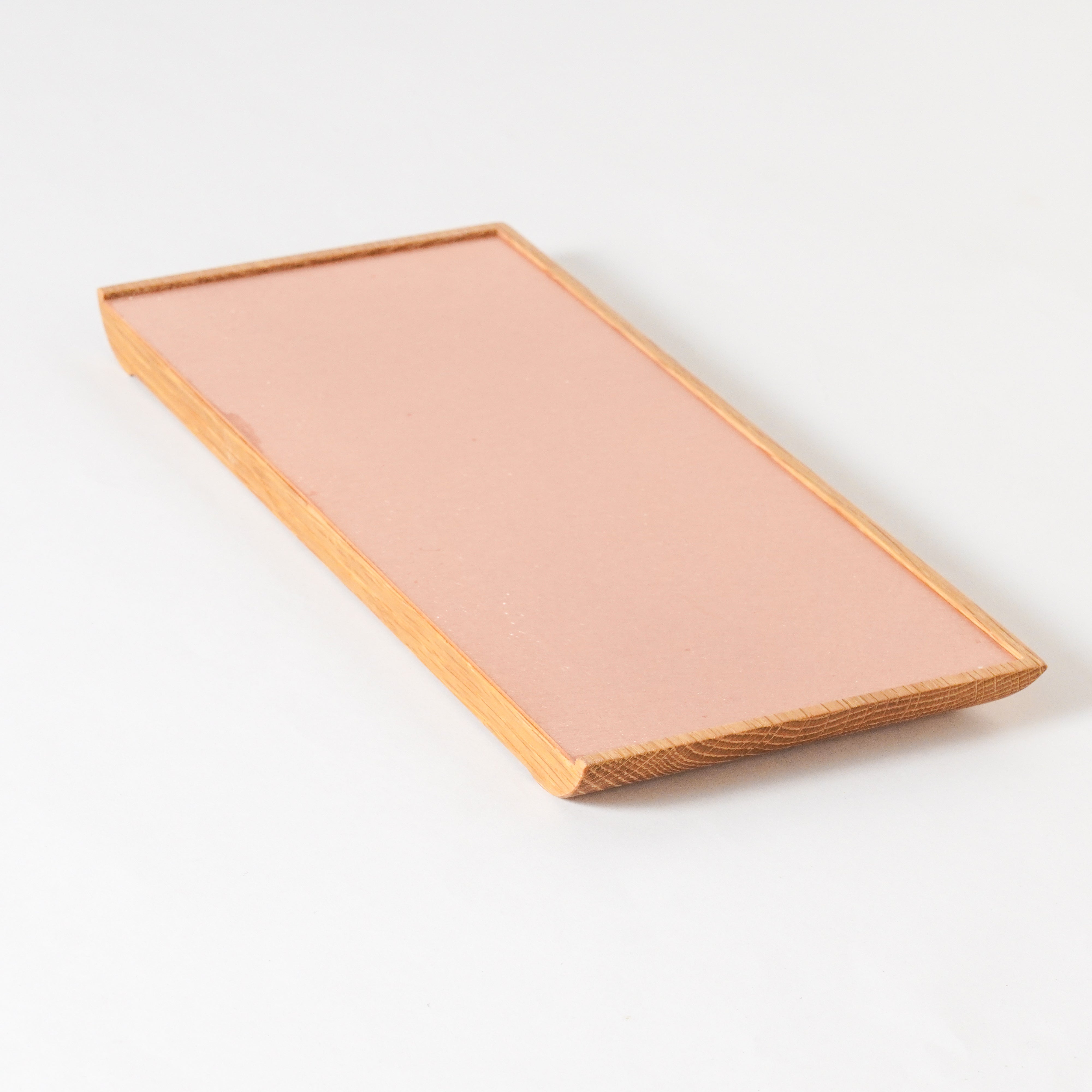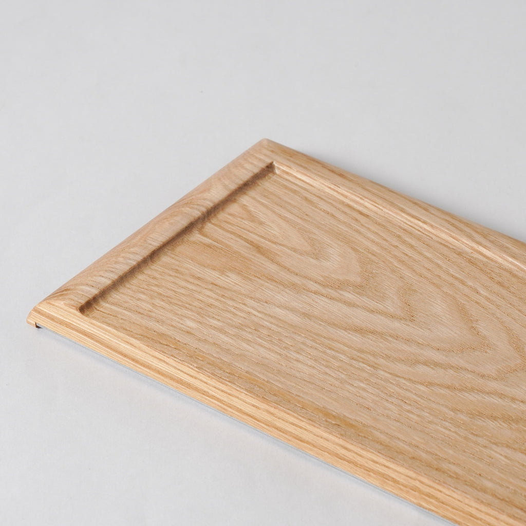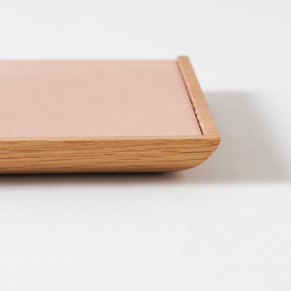 両面どちらを表にしてもお使いいただけます。壁に添わすことで、棚や机に小さな「余地」が生まれ、筆記具や化粧品、鍵などの小物を載せるのにちょうど良い大きさです。