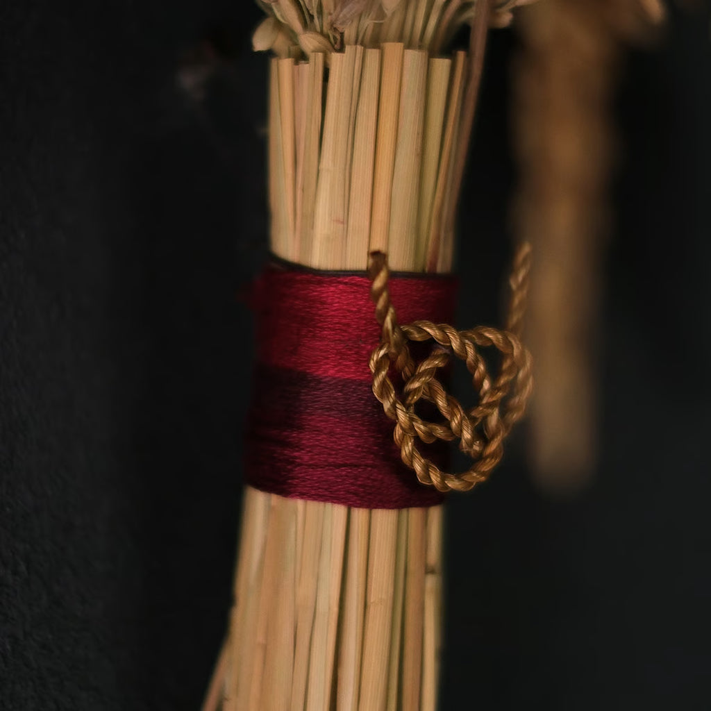 むすびの赤色部分は3色の赤糸を使用し 「生命力・魔除け・吉事」を象徴しています。