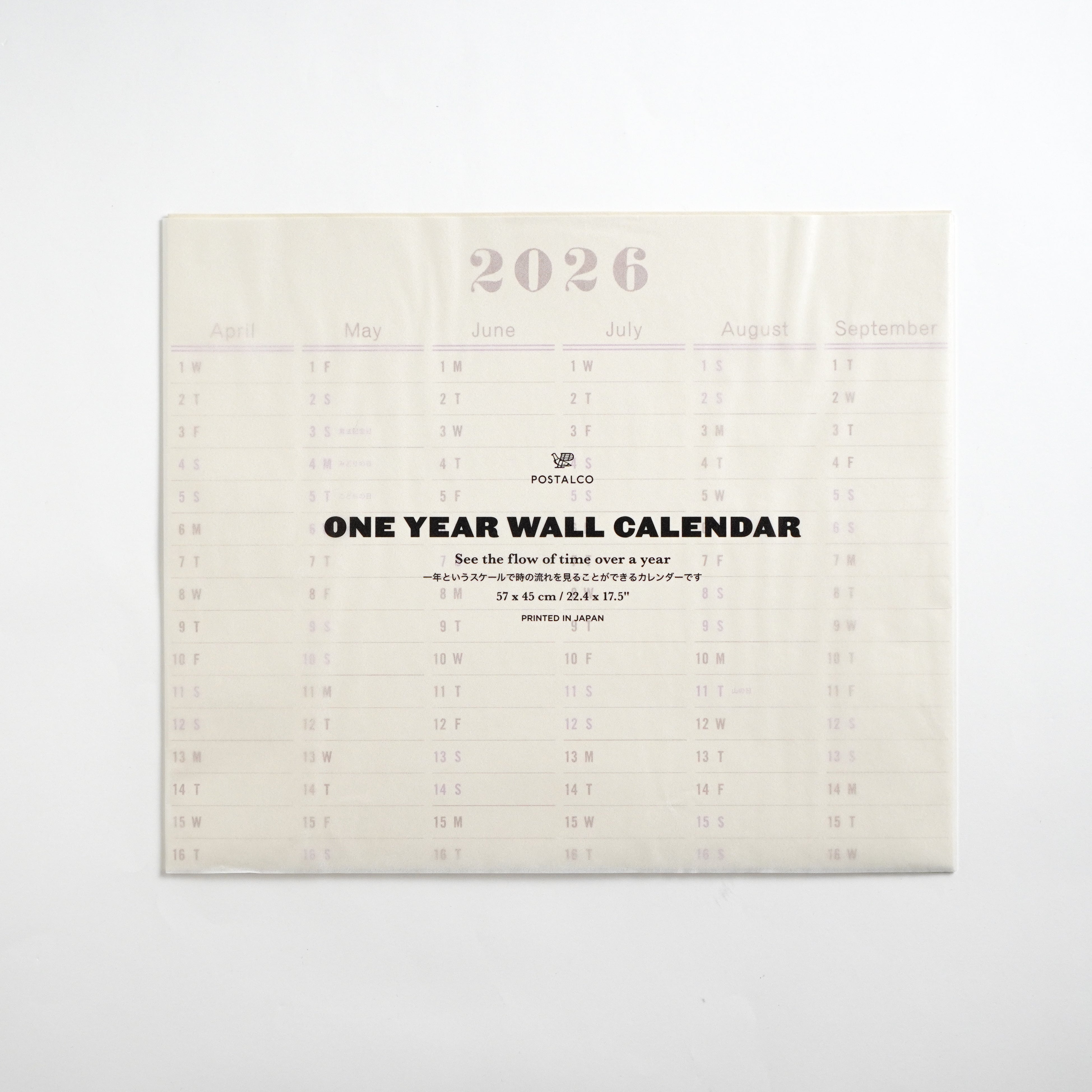 一款可以讓您鳥瞰一年的行事曆。紋理紙和柔和的彩色墨水營造出賞心悅目的設計。我喜歡有一欄可以寫每天的日程安排,底部還有一個空間可以寫筆記。請用膠帶或大頭釘將其貼在牆上使用。它還可以折疊並攜帶。它對應於日本的假期。